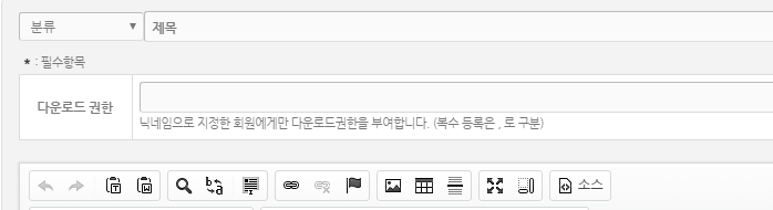 글을 쓸때 에디터 위에 다운로드 권한이 닉네임 지정만 보이고