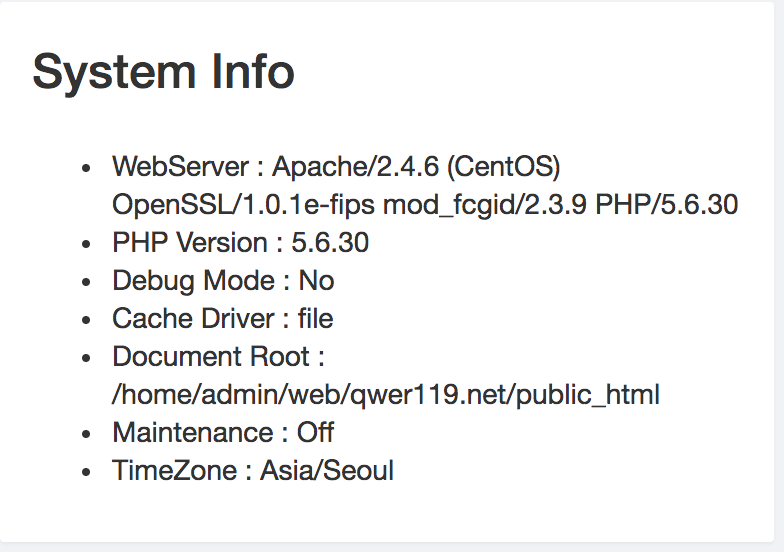 XE3관리자 페이지의 시스템 정보표시에 나오는 내용이