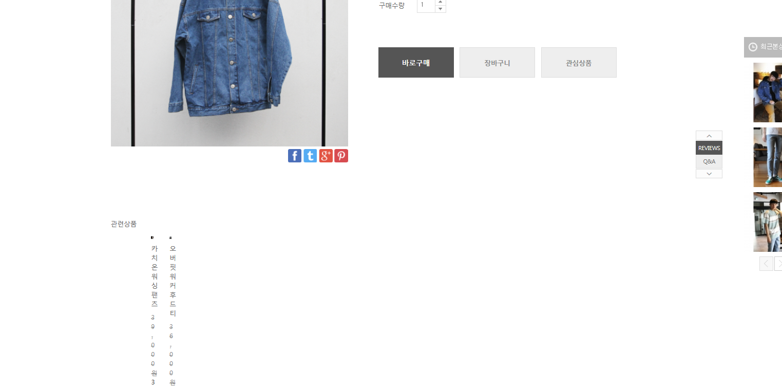 관련상품이 이상하게 뜹니다 질문쟁이 2017.04.23 06:21 122 0 2 http://www.atpercent.com/BEST/3610 이구요 아래와 같이 관련상품이 이상하게 떠가지구요.. 어떻게 해야할지 도통 잘모르겠네요..