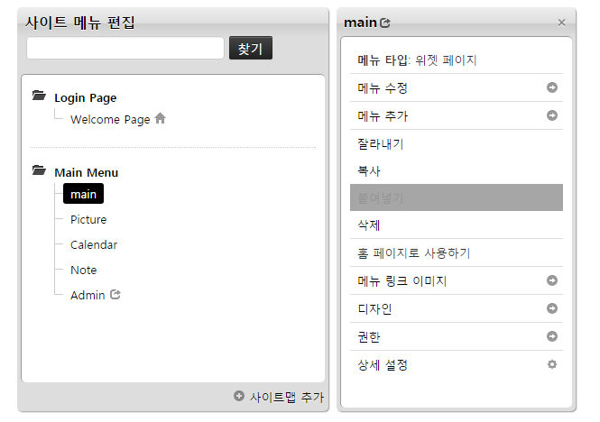 다시 다른 페이지를 만들고 지정해보세요. 로그인 메뉴나 메인메뉴에 다른 위젯페이지 만들고 지정해보세요. 캐시파일 재생성도 해보세요.
