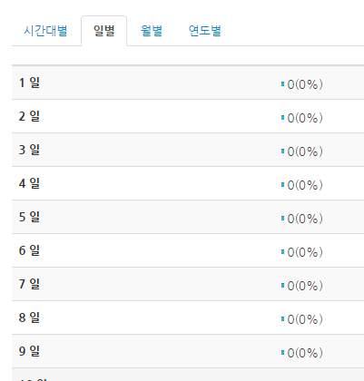 그외 다른 통계 모듈은 작동이 되고 있는데 기본 모듈만 안되네요. 정말 접속이 없어서일까요? ㅜ.ㅜ