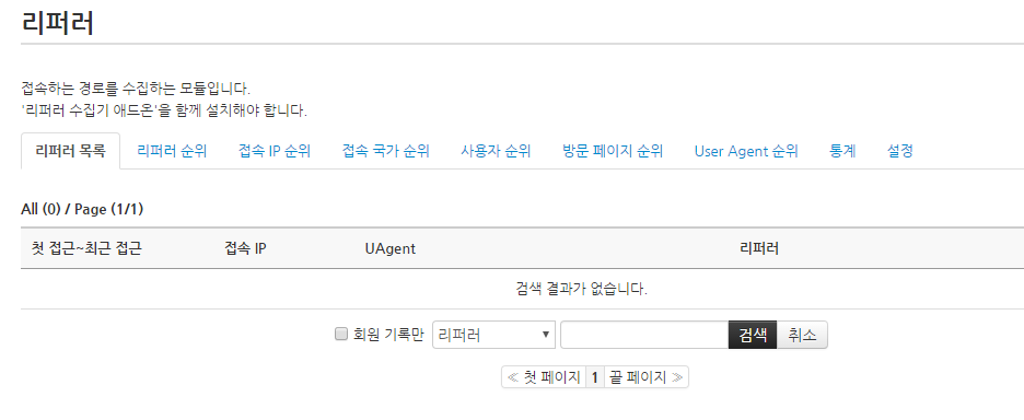 리퍼러 애드온 설정도 수집하려는 페이지 체크하고 저장을 했거든요
