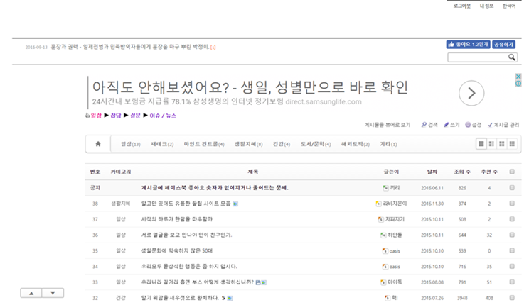 스케치북 레이아웃에는 다른 게시판 메뉴들은 또 나오는데, 한부분의 메뉴가 안나옵니다.