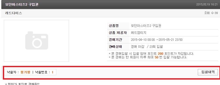 경매 모듈과 스킨을 다 설치 하고 시험삼아 경매 페이지를 만들었는데, 아래 사진은 다른분 사이트의 경매 페이지인데요. 빨간 네모안에 '낙찰자'와 또 '입찰내역'버튼이 있는데요......