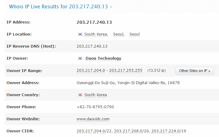 해당 IP를 조회를 해보면 Daou Technology 로 나오는데 여긴 어디인지 혹시 아세요?