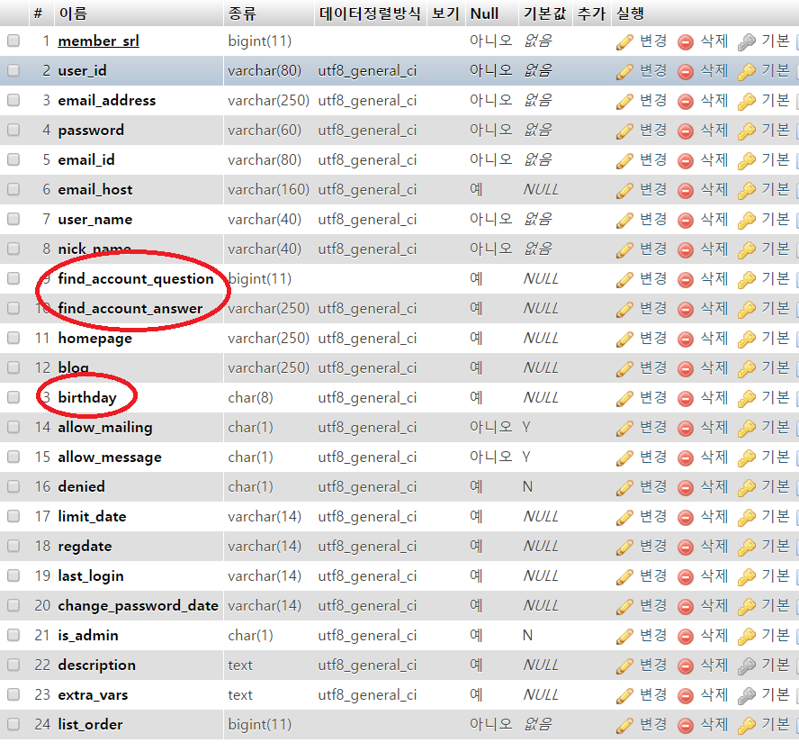 이름을 전부 삭제하려면 저 user_name을 삭제해도 되는건지, 아니면 삭제하면 안되고 전부 member_srl 이랑 동일한 값으로 변경해야 하는건지 모르겠네요