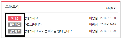 처리중, 답변 완료 라는 부분은 카테고리 부분인거 같은데요.
