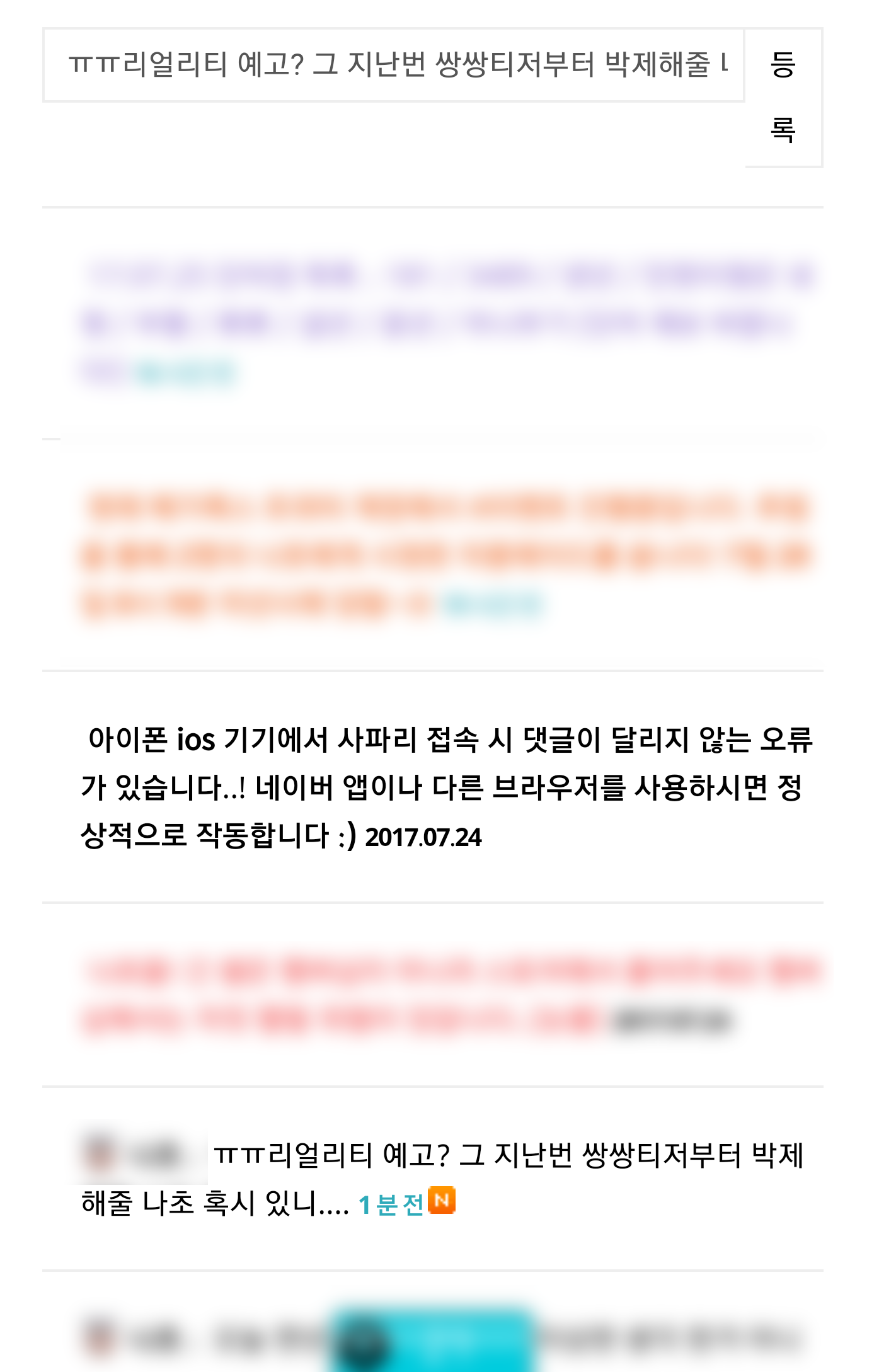 꼭 사파리에서만 글을 남기면 첨부 이미지처럼 글은 이미 등록 됐는데도 글이 남아있어요.
