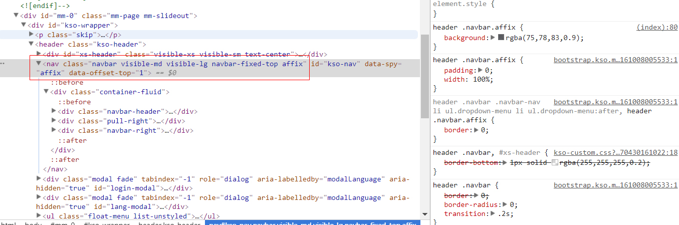클래스를 보면 디폴트값이 affix-top 인데 스크롤을 내리면 아래처럼 affix로 바뀝니다.