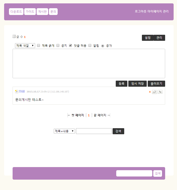 하단 영역을 봐주세요! 다른 게시판/ 페이지 에서는 정상적으로 잘 나오는데요.