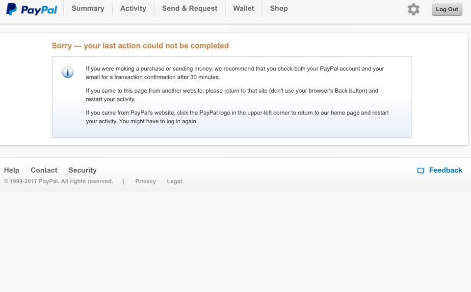 페이팔 잘 아시는분 ㅠㅠ관련 질문드립니다. 임시크 2017.08.10 14:23 613 0 1 사이트에 페이팔 기부받기 버튼을 달았는데 기부할시 해당 오류가 난다고 합니다 무엇이 문제인지 ㅠㅠ