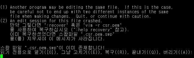 간단하게 파일 내용을 확인하려면 굳이 vi를 사용할 필요 없이 cat csr.pem 명령만 내려도 됩니다.