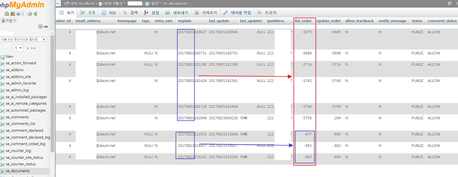그런데 새 글을 작성하면 리스트오더가 이전에 작성한 글보다 낮아 최근리스트에 새 글이 나오지 않고