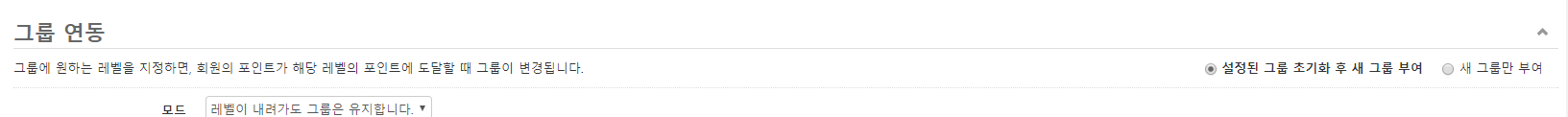 2.포인트모듈에서 포인트와 레벨을 연동 그리고 그룹을 연동한 상황이라고 가정을 한다면 예전그룹을 유지하면서 새그룹을 추가하면 기존 그룹을 유지하며 새그룹이 추가가 됩니다.