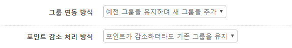 포인트와 그룹연동에서 각 그룹에 해당할 포인트는 입력해 놓지 않은(설정하지 않은) 상태입니다.