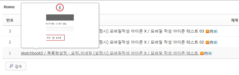 요약,섬네일을 사용하면 말풍선에 아이콘이 들어가며 목록에는 표시 되지 않습니다.