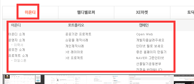 기본 메뉴를 만들고 그 안에 다시 구조화한 건데요..