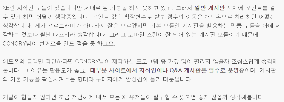 저도 지식인 기능이 필요해서 위의 지식인 모듈을 깔았지만, 기능적으로 충분하지 못하다는 인상이었습니다. 그래서 그냥 일반 게시판으로 대체했지요...