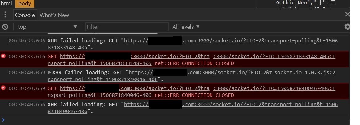 따라서 브라우저 쪽의 에러화면에는 3000이라는 숫자 자체가 등장하면 안되고, 3000번 포트를 방화벽에서 열어줄 필요조차 없습니다. 3000번 포트는 SSL을 사용하지 않으므로 외부 접속 용도로는 전혀 쓸모가 없거든요. 아파치와 node.js 사이의 내부 통신에나 쓰는 포트입니다.