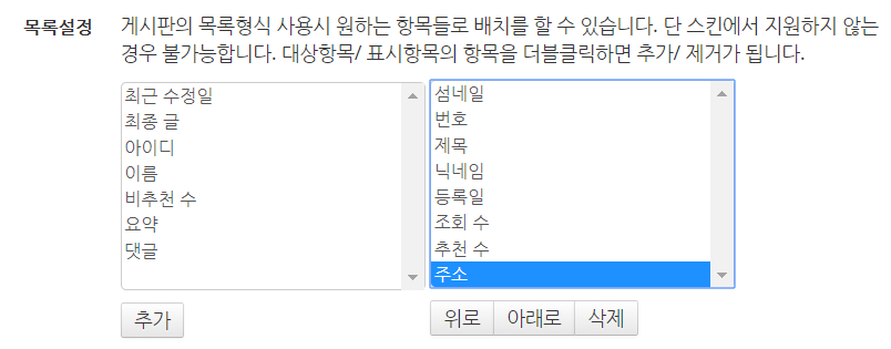 게시판 스킨 관리에서 해당 설정을 사용으로 설정 합니다. (게시판 목록 설정에 해당 변수 추가 안해도 됩니다)