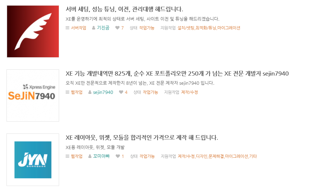 위에 보시는건 타운에 프리랜서 게시판에 있는 항목들입니다.