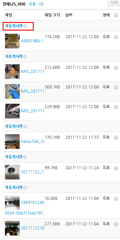 모든 게시판이 등록순으로 나오니 삭제하기가 힘드네요...