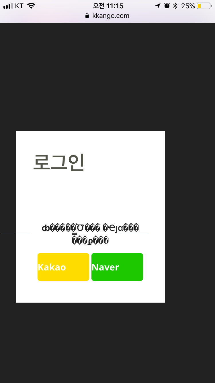 저 깨지는 글자는 - 회원가입없이 소셜로그인 이용하세요 - 요 글자인데 뭐가 문제인지 모르겠습니다