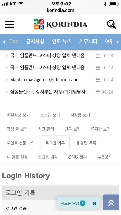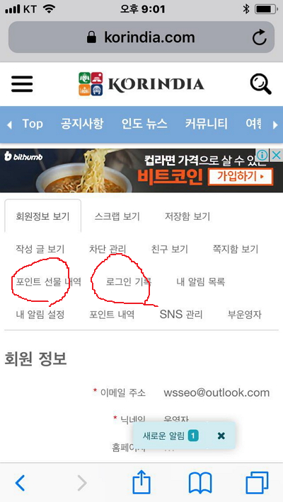 저 중에 '포인트 선물 내역'과 '로그인 기록' 이 두부분이 좀 문제입니다.