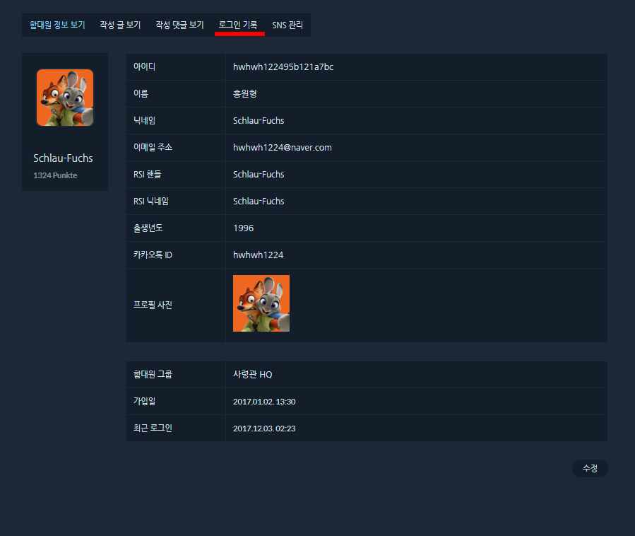 • 로그인 기록관련 모듈에 들어가시면 아마도 노출여부를 선택하는 옵션이 있을겁니다.