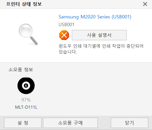 이걸로 안되면 프린터 아이콘 오른쪽 클릭 후 문제 해결 눌러보세요.