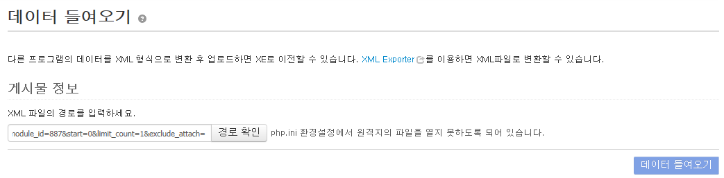마지막에 말씀 드린것 처럼 xml 데이터파일을 현재 서버에 복사해 오신다음