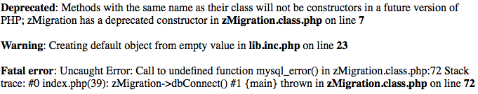 아래 프로그램을 이용하여 XE의 데이터를 추출하려고 했지만 위와 같은 오류가 뜨면서 진행이 되지 않습니다. PHP 버전의 문제인지 잘 모르겠습니다.