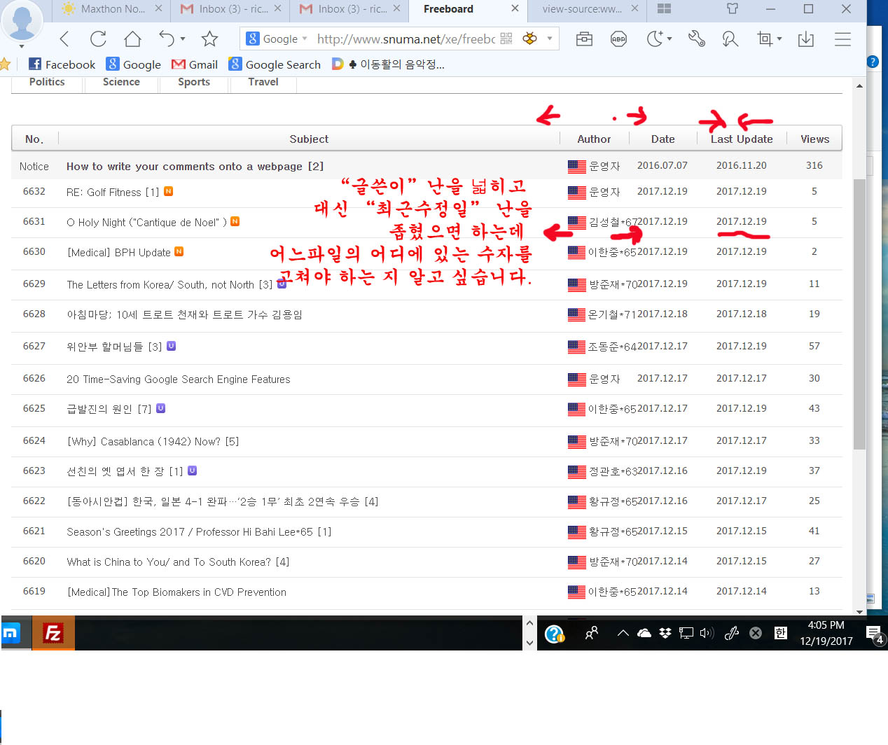 "글쓴이”난을 넓히고 대신 “최근수정일” 난을 좁혔으면 하는데 어느파일의 어디에 있는 수자를 고쳐야 하는 지 알고 싶습니다. 현재 쓰고 있는 레이아웃은 XE_Official 이고 XE_Default 스킨을 쓰고 있습니다.