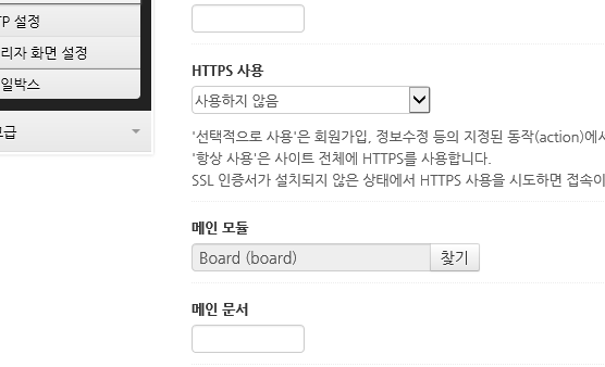 메인 모듈을 게시판으로 설정하면 저런 문구가 뜹니다.