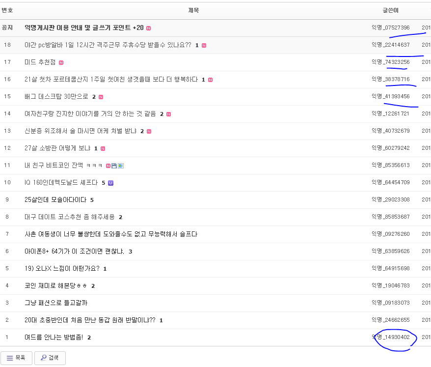 리스트 목록 출력해주는 스킨 파일 찾아서 (익명 뒤에 숫자 넣을때 수정한 파일)