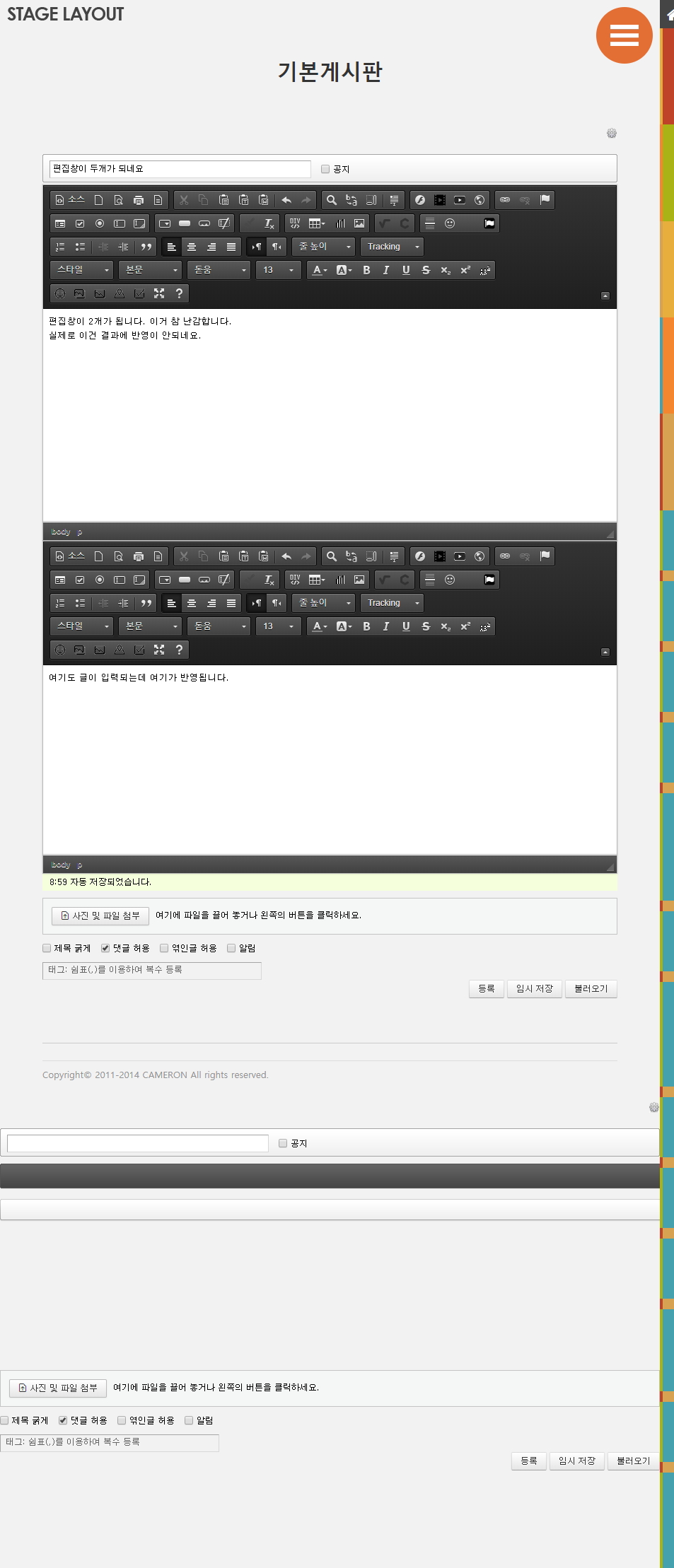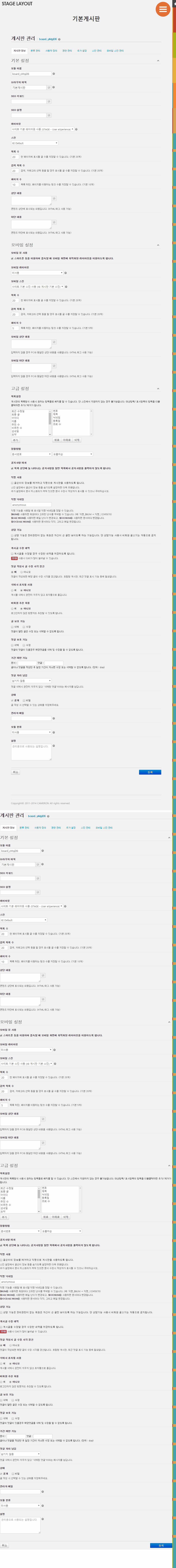 2) 게시판 설정화면에서 전체 설정내용이 2번씩 반복됩니다.