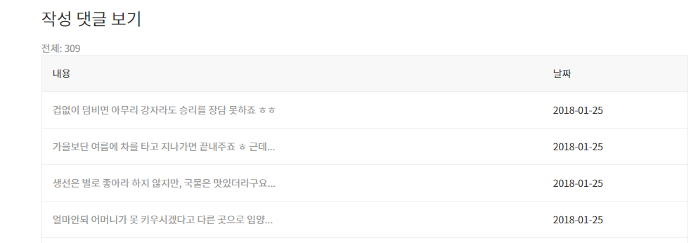 멤버 메뉴의 '작성 댓글 보기'의 제목길이를 조정하려면 어디를 수정해야 하나요? 튜닝셀프 2018.01.27 10:34 185 0 2 아래처럼 작성 댓글 보기의 제목이 해당셀의 절반도 차지 않았는데 글자수가 잘려있는데요, 제목길이를 좀 길게 늘릴려면 어디를 수정해야 하나요?