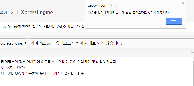 관리자 페이지에서는 라이믹스,XE 모두 입력이 안됩니다.