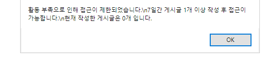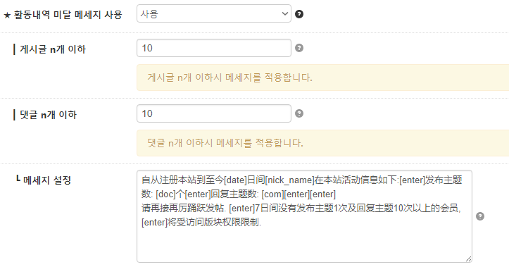 모듈에 로그인 메세지에서도 활동내역 미달 메세지를 활성화 하고 이미 중문으로 다 번역 해 놨으나 정작 뜨는건