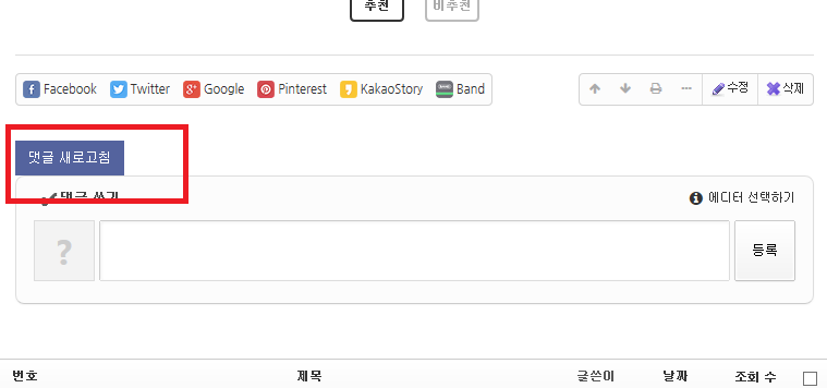여기에 댓글 새로 고침 중간으로 하고 싶은데요.